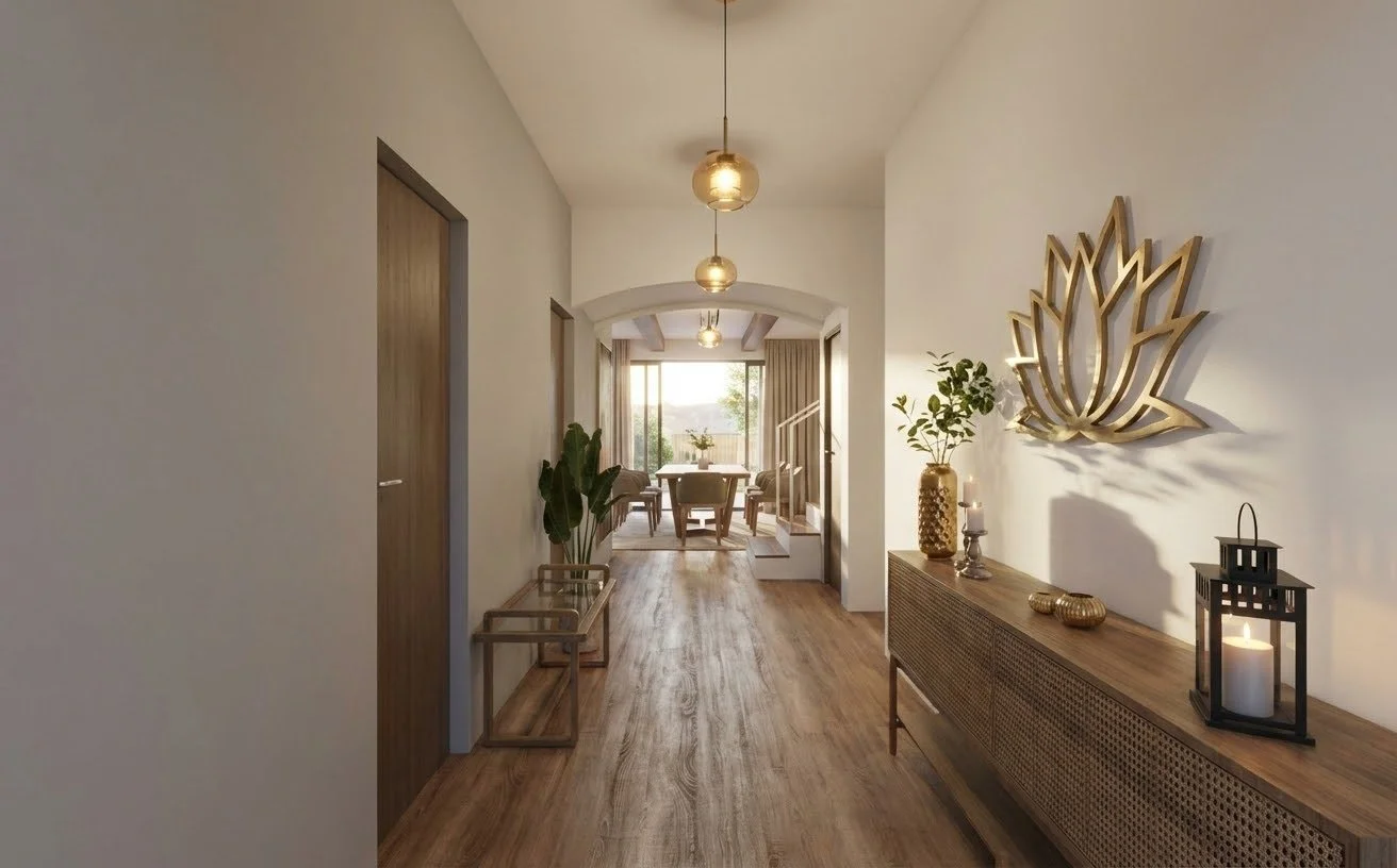 Influences from Rajasthan, Paris, and Gothic European architecture are interpreted subtly through proportion, pattern, and the handling of light. Vastu-informed planning further anchors the layout, supporting a sense of balance and calm in everyday living.