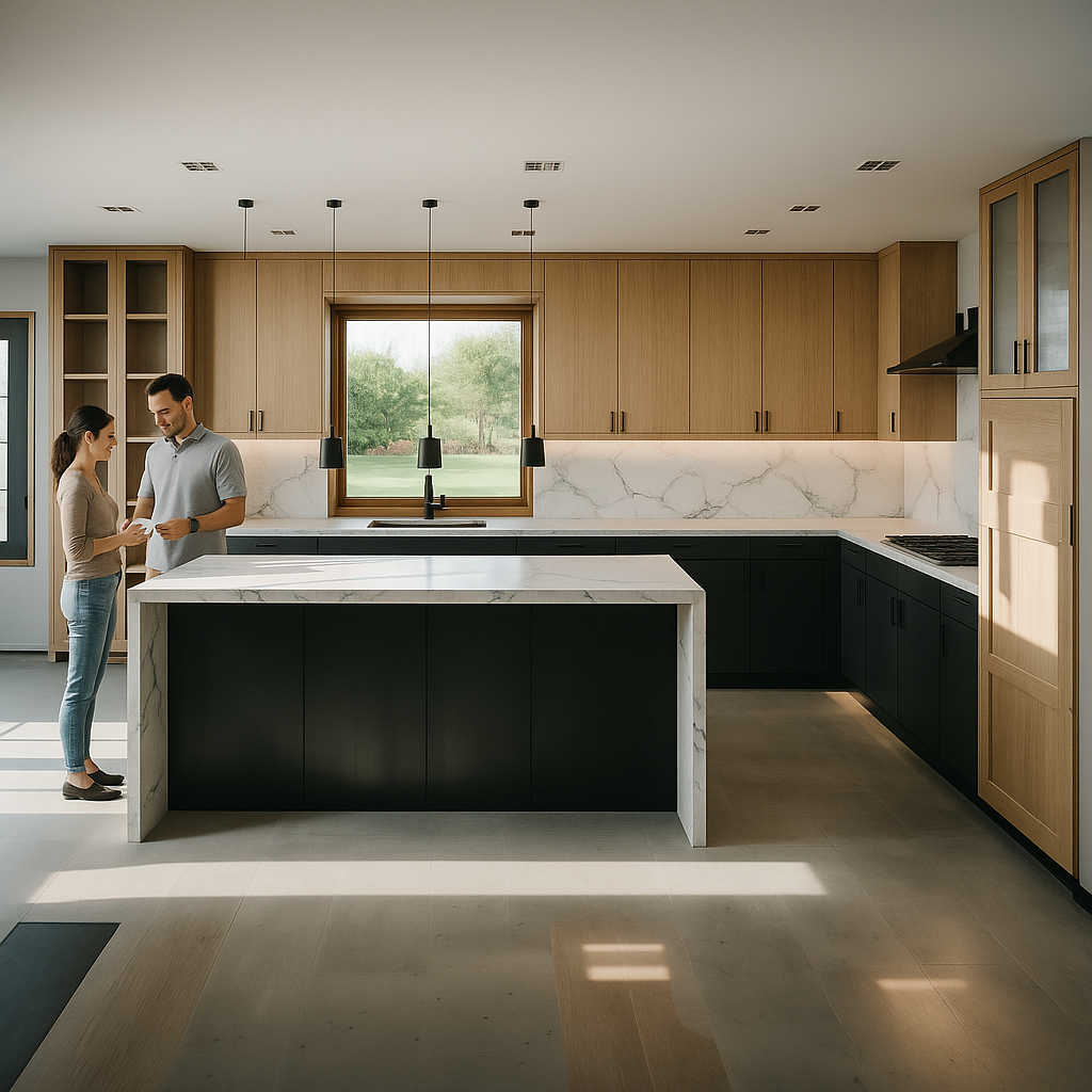 This remodel reimagines the home’s layout with a complete kitchen relocation to create better flow and functionality. A dedicated foyer introduces a warm sense of arrival, while the fireplace is transformed with a sleek modern insert as a focal point. The bathrooms were also redesigned, bringing in fresh finishes and contemporary comfort throughout.